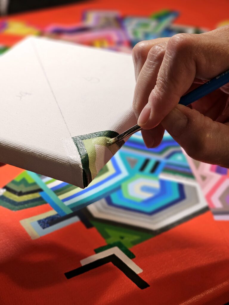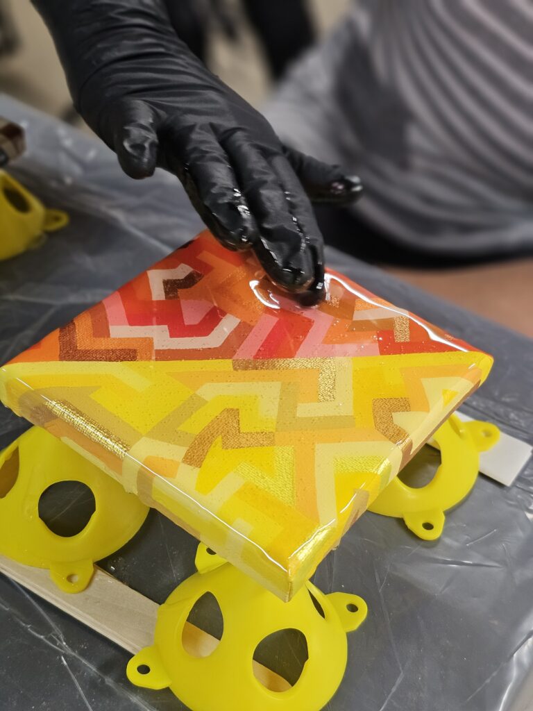 “Aligned V9” | 3 x 3 in | acrylic and latex with resin | 9 pieces sold as a set